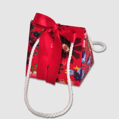 С формата си и капака си в горната част, тези чанти съчетават удобствата на кутия с лесно отваряне/затваряне и текстилни дръжки от шнур или лента.
